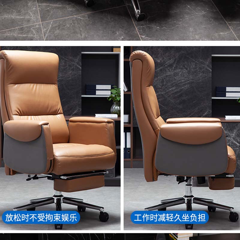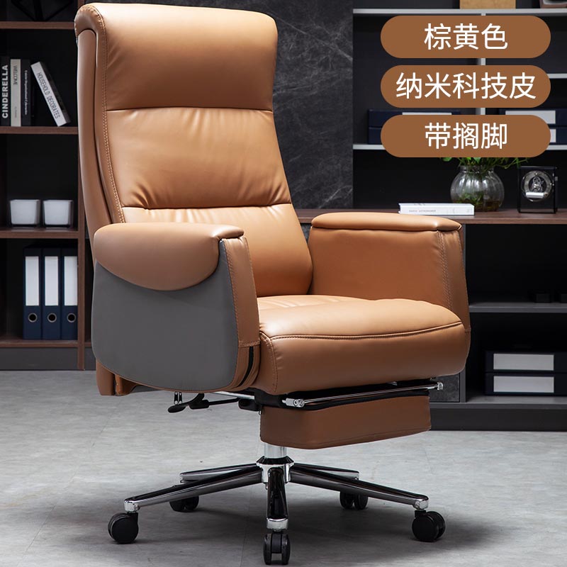 Ergonomic Executive Office Chair, PU Leather Adjustable Height High-Back Reclining Chair with Padded Armrest and Footrest,Yellow